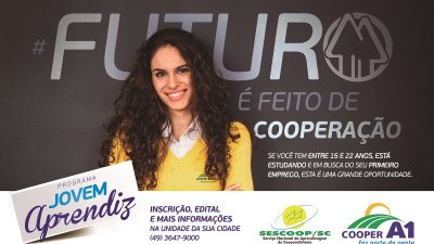 O programa foi implantado na Cooper A1 em 2013 em parceria firmada com o Serviço Nacional de Aprendizagem do Cooperativismo (Sescoop) e com CIEE, que dá o suporte pedagógico com o curso modular. Até agora, 120 jovens da região já passaram pelo programa na Cooper A1. A coordenadora do Setor Pessoal da Cooper A1 e responsável pelo programa, Rosilene Giebmeier explica que, além de atender a legislação federal, o Jovem Aprendiz Cooperativo, abre oportunidades e garante ao jovem a capacitação profissional como etapa do seu processo educativo. Segundo Rosilene, dependendo do seu desempenho, os aprendizes têm chances de serem efetivados no quadro funcional da Cooper A1.Oportunidade a jovens da região - O presidente da Cooper A1, Elio Casarin, afirma: “Levando em consideração as dificuldades encontradas para ingressar no mercado de trabalho, um curso profissionalizante como este pode significar a chance de obter uma formação profissional, que também é ferramenta de construção da vida pessoal e social destes jovens. A Cooper A1, que tem sua essência voltada à família e à formação de pessoas, tem satisfação em poder fazer a diferença na vida destes jovens”._________________________________________________
