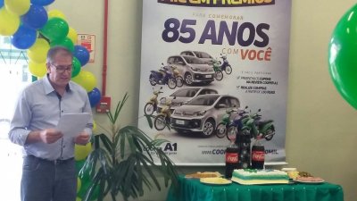 O evento também marcou o lançamento da promoção ‘300 mil em prêmios para comemorar 85 anos com você’. O início da promoção, abriu as comemorações dos 85 anos da cooperativa, que serão completados em outubro de 2018. Com 9 motos 4 carros e mais centenas de prêmios sorteados todos os meses, será a maior promoção da história da cooperativa. Serão mais de 300 mil reais distribuídos aos cooperados e clientes através de prêmios. O presidente da Cooper A1, engenheiro agrônomo Elio Casarin destaca: “Planejamos algo especial para iniciarmos as comemorações das oito décadas e meia desta cooperativa, que serão completadas em outubro de 2018. Com esta promoção toda comunidade poderá ser envolvida e presenteada. Nosso objetivo é fortalecer ainda mais os laços com as milhares de pessoas que gostam da Cooper A1 e acreditam no cooperativismo”.Como participar?
