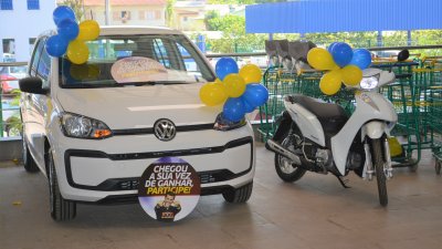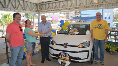 Casarin também fez o anúncio da ganhadora do carro Up Take 0 km, Katiana Barbiero, do município de Palmitos, SC. A direção entrou em contato, e prontamente a ganhadora chegou ao sorteio. “Passamos em frente ao supermercado hoje pela manhã, meu marido viu o carro e brincou ‘olha nosso carro ali’”, contou Katiana.